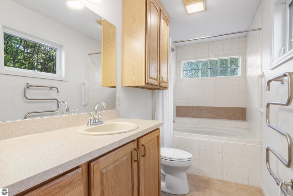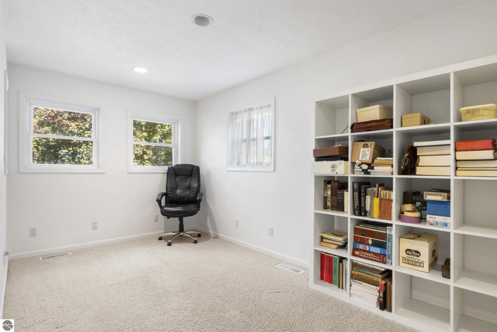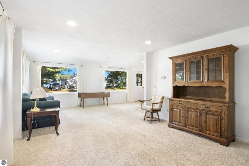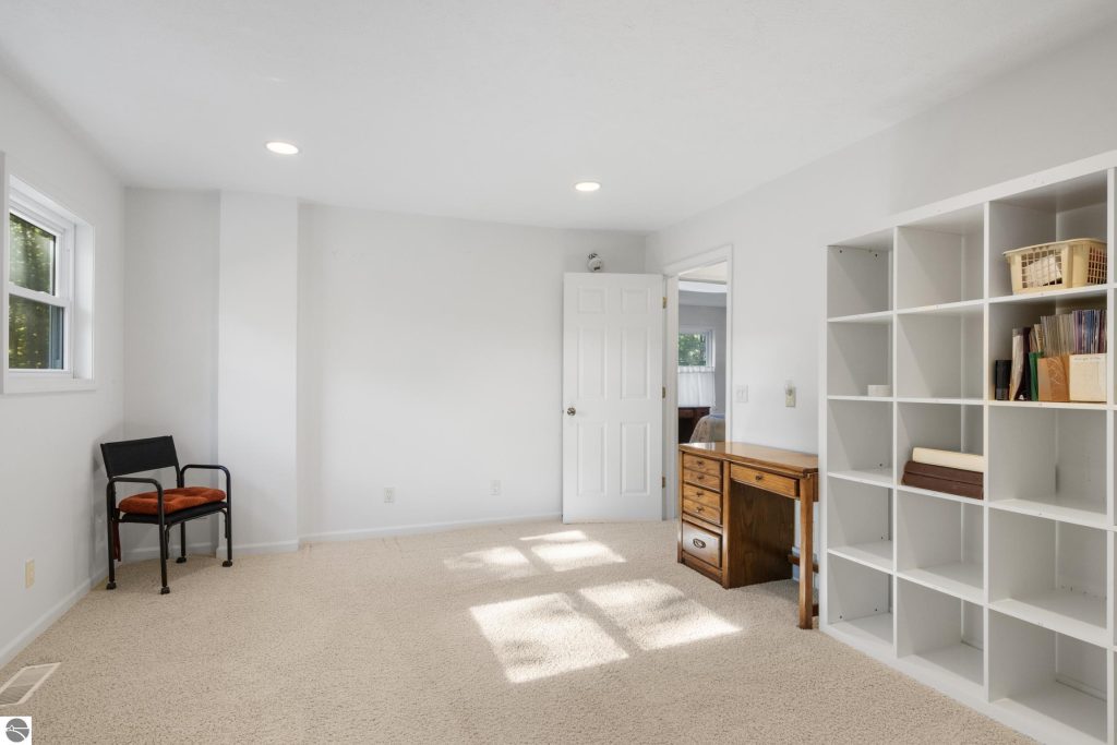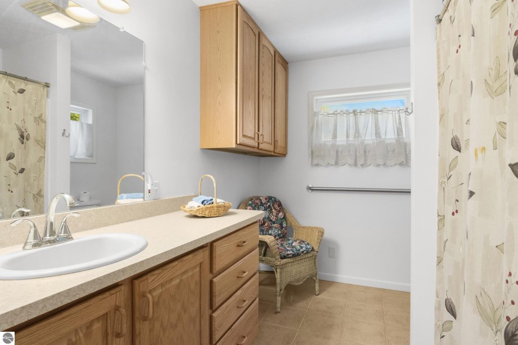 Access to Big Platte Lake comes with this year-round four-bedroom, two-bath home and a huge, detached garage with a workshop. Steps lead to your shared 25 feet of lake access across the street, on the southwest side of the lake. Wear your swimsuit and bring the kayaks, or add a dock to launch into all-sports fun. Completely remodeled in 2001, the two-story home has 2202 sq ft, with plenty of bedrooms for guests or use the space for crafts, hobbies, working out or reading. Everything sparkles and is in move-in condition with built-ins for your belongings. The dining room faces the lake, as does the kitchen sink, so prepare, clean up, and feast this holiday and still enjoy the view. Lengthy counters and plentiful cupboards give you the elbow room and storage you need, with additional cupboards in the hallway for your special dishware. Multiple windows add light to the large living area. The main level also includes a bedroom and full bath, a laundry room with a sink and cupboards, and a mudroom entry. Upstairs are three more bedrooms. The primary bedroom includes a private bath and a large, walk-in closet. A vaulted wood ceiling and bookcase in another room offer a cozy space for your private library. When you are in a social mood, gather on the front deck with friends and head to the back patio. A 48×24 garage has lots of room for vehicles and toys, and the enclosed workshop gives you space to create, tinker and fix. Big Platte Lake is known for swimming, fishing, sailing and boating. Paddle from here to Lake Michigan.